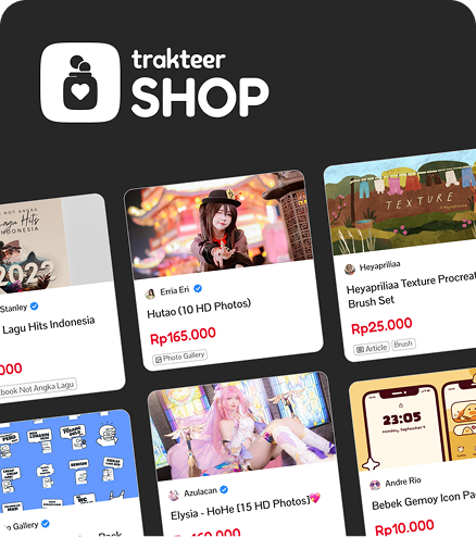 Tak terbatas jarak dan format, di Trakteer Shop, Kreator bisa menjual berbagai macam produk digital dalam hitungan detik dan sekali klik!